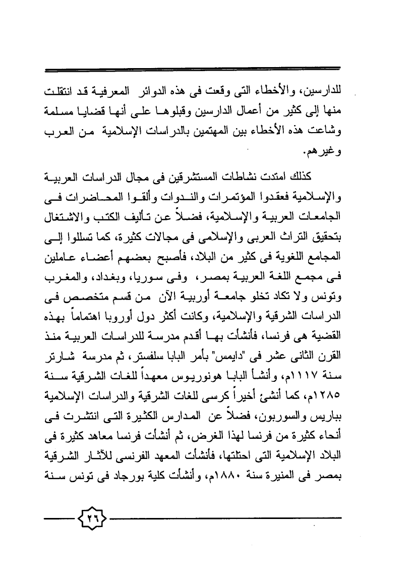 للدرسين، والأخطاء التي وقعت في هذه الدوائر المعرفية قد انتقلت منها إلى كثير من أعمال الدارسين، وقبلوها على أنها قضايا مسلمة وشاعت هذه الأخطاء بين المهتمين بالدراسات الإسلامية من العرب وغيرهم.