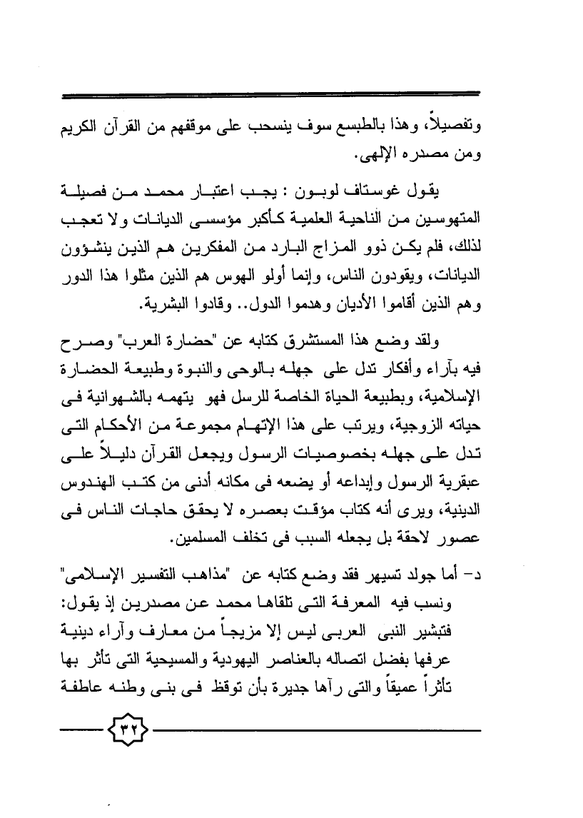 يقول غوستاف لوبون: يجب اعتبار محمد من فضيلة المتهوسين من الناحية العلمية كأكبر مؤسسي الديانات، ولا تعجب لذلك؛ فلم يكن ذوو المزاج البارد من المفكرين هم الذين ينشؤون الديانات، ويقودون الناس، وإنما أولو الهوس هم الذين مثلوا هذا الدور وهم الذين أقاموا الأديان وهدموا الدول.. وقادوا البشرية.