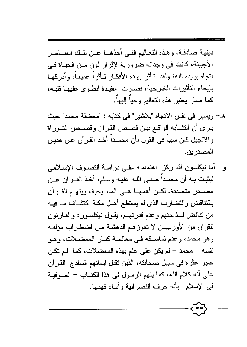 هـ- ويسير في نفس الاتجاه "بلاشير" في كتابه: "معضلة محمد"؛ حيث يرى أن التشابه الواقع بين قصص القرآن وقصص التوراة والإنجيل كان سببًا في القول بأن محمدًا أخذ القرآن عن هذين المصدرين.