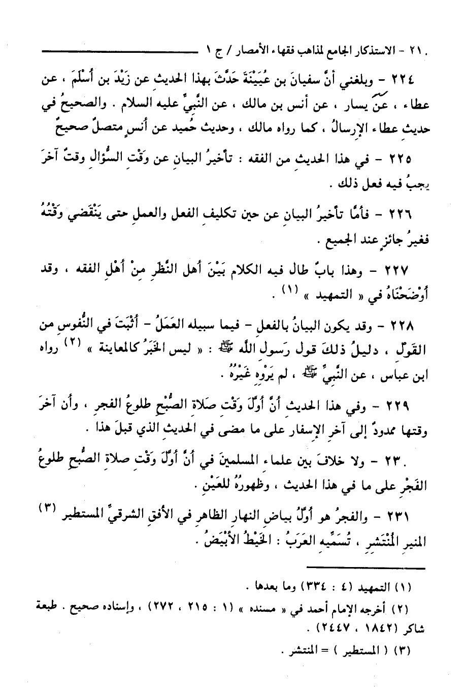 227 - وَهَذَا بَابٌ طَالَ فِيهِ الْكَلَامُ بَيْنَ أَهْلِ النَّظَرِ مِنْ أَهْلِ الْفِقْهِ، وَقَدْ أَوْضَحْنَاهُ فِي " التَّمْهِيدِ ".