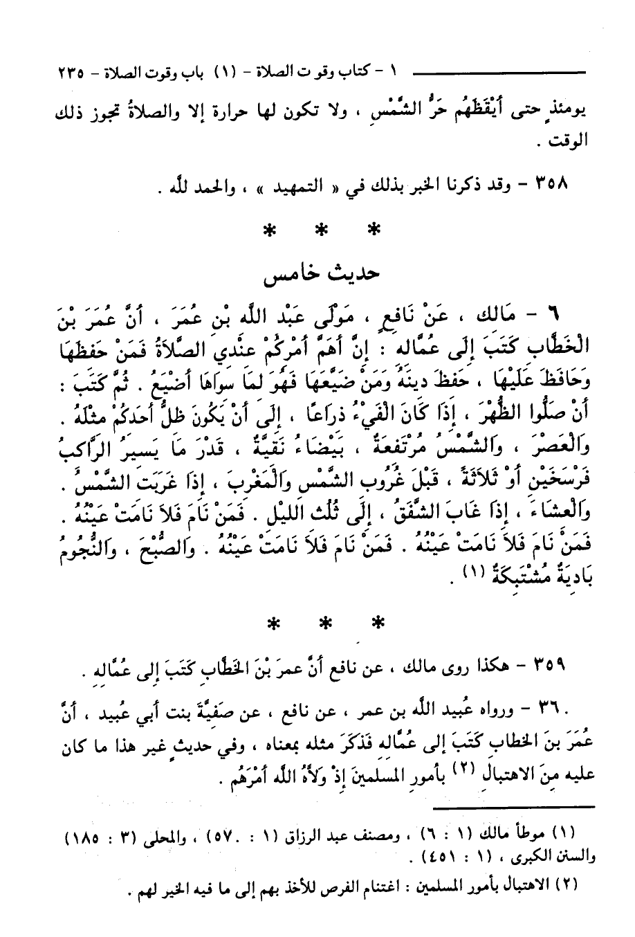 359 - هَكَذَا رَوَى مَالِكٌ، عَنْ نَافِعٍ: أَنَّ عُمَرَ بْنَ الْخَطَّابِ كَتَبَ إِلَى عُمَّالِهِ.