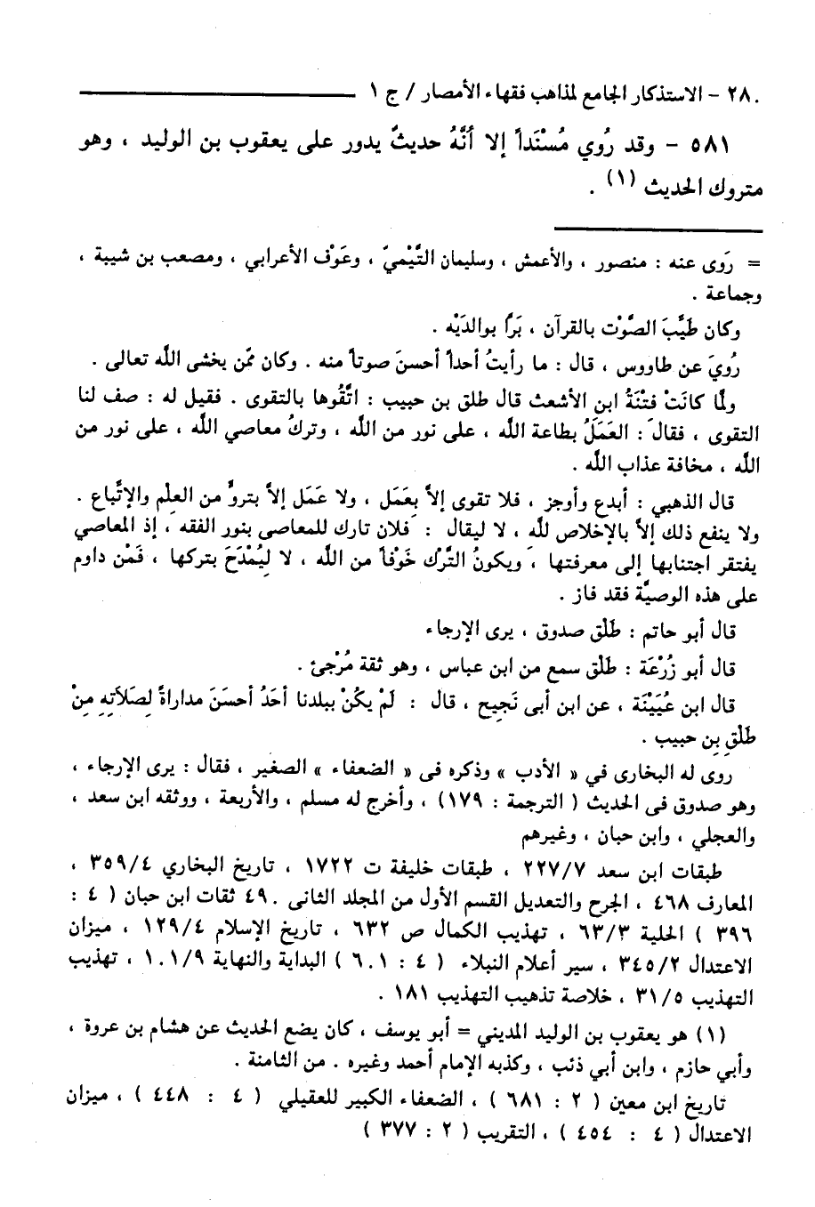 581 - وَقَدْ رُوِيَ مُسْنَدًا إِلَّا أَنَّهُ حَدِيثٌ يَدُورُ عَلَى يَعْقُوبَ بْنِ الْوَلِيدِ، وَهُوَ مَتْرُوكُ الْحَدِيثِ.