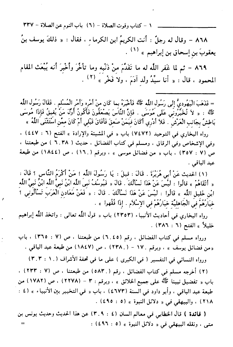 868 - وَقَالَ لَهُ رَجُلٌ:أَنْتَ الْكَرِيمُ ابْنُ الْكُرَمَاءِ، فَقَالَ: " ذَلِكَ يُوسُفُ بْنُ يَعْقُوبَ بْنِ إِسْحَاقَ بْنِ إِبْرَاهِيمَ ".
