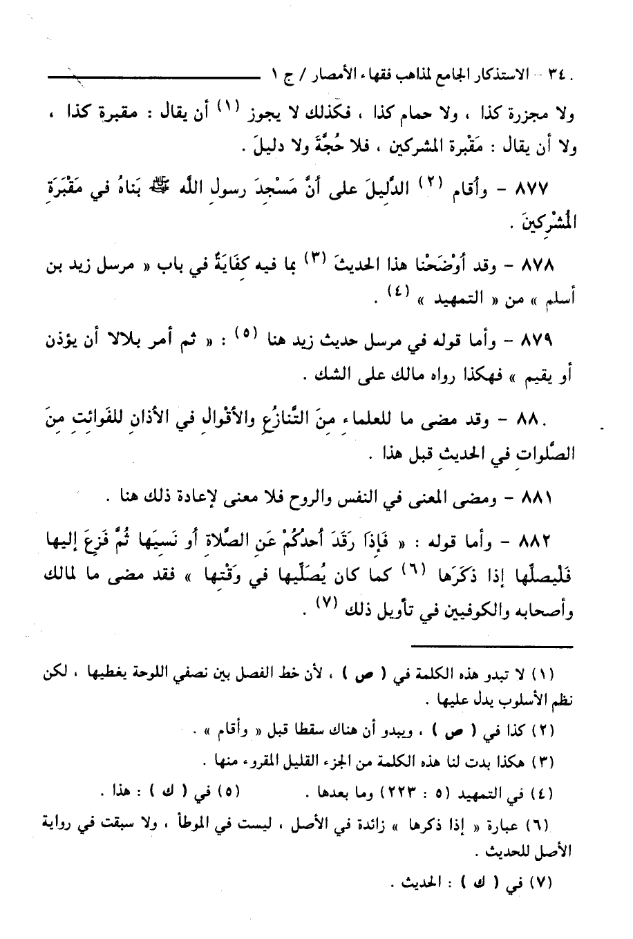 كتاب الاستذكار الجامع لمذاهب فقهاء الأمصار - ت: قلعجي (اسم الجزء: 1)