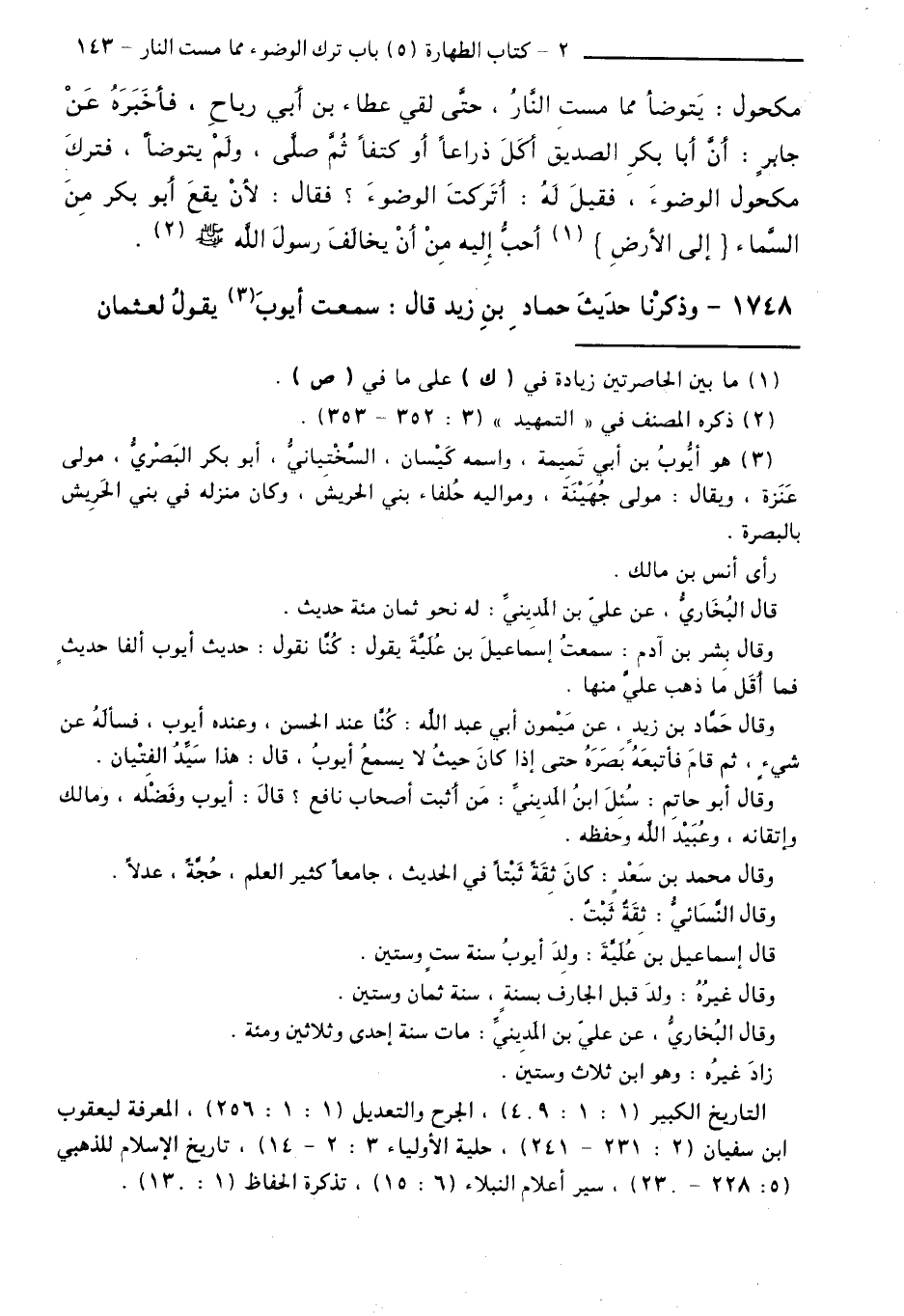 1748 - وَذَكَرْنَا حَدِيثَ حَمَّادِ بْنِ زَيْدٍ قَالَ: سَمِعْتُ أَيُّوبَ يَقُولُ لِعُثْمَانَ