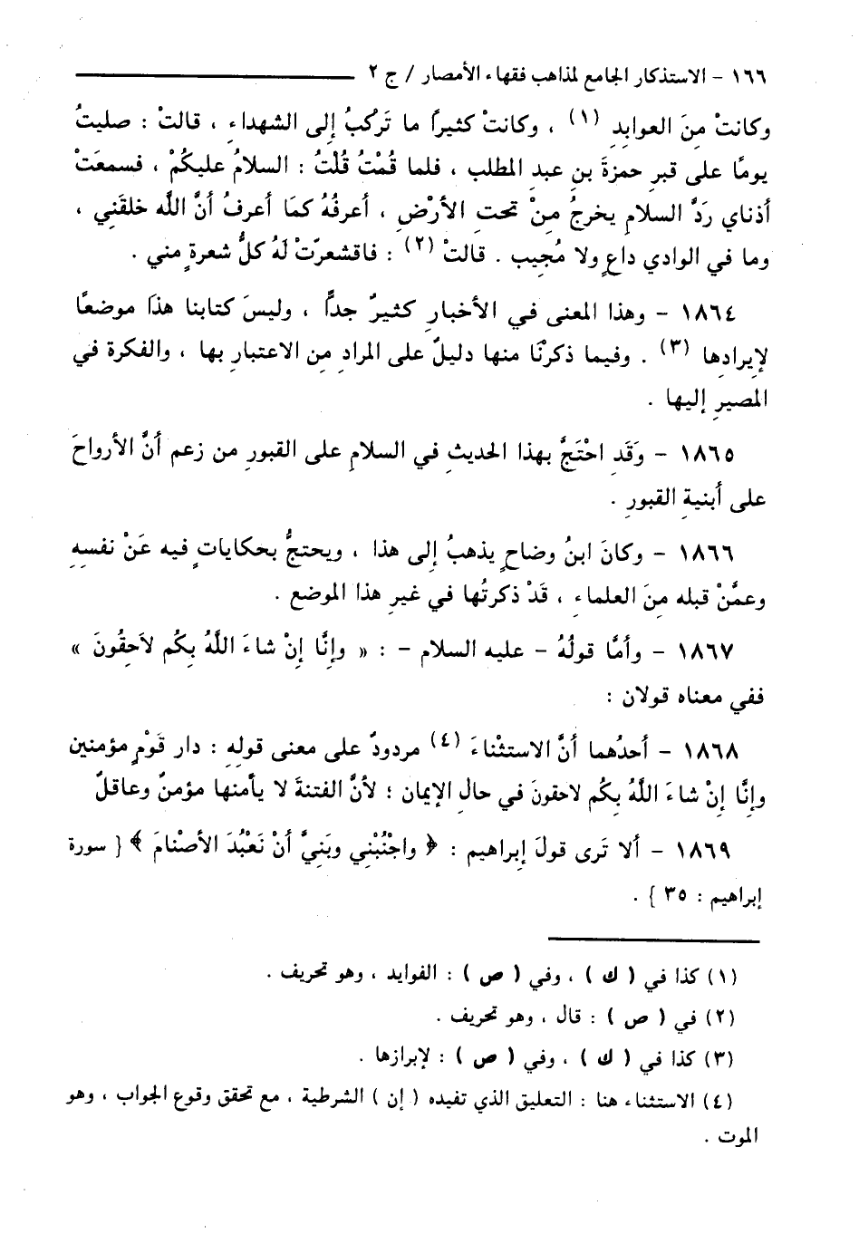 1869 - أَلَا تَرَى قَوْلَ إِبْرَاهِيمَ: "وَاجْنُبْنِي وَبَنِيَّ أَنْ نَعْبُدَ الْأَصْنَامَ " [ إِبْرَاهِيمَ: 35 ].