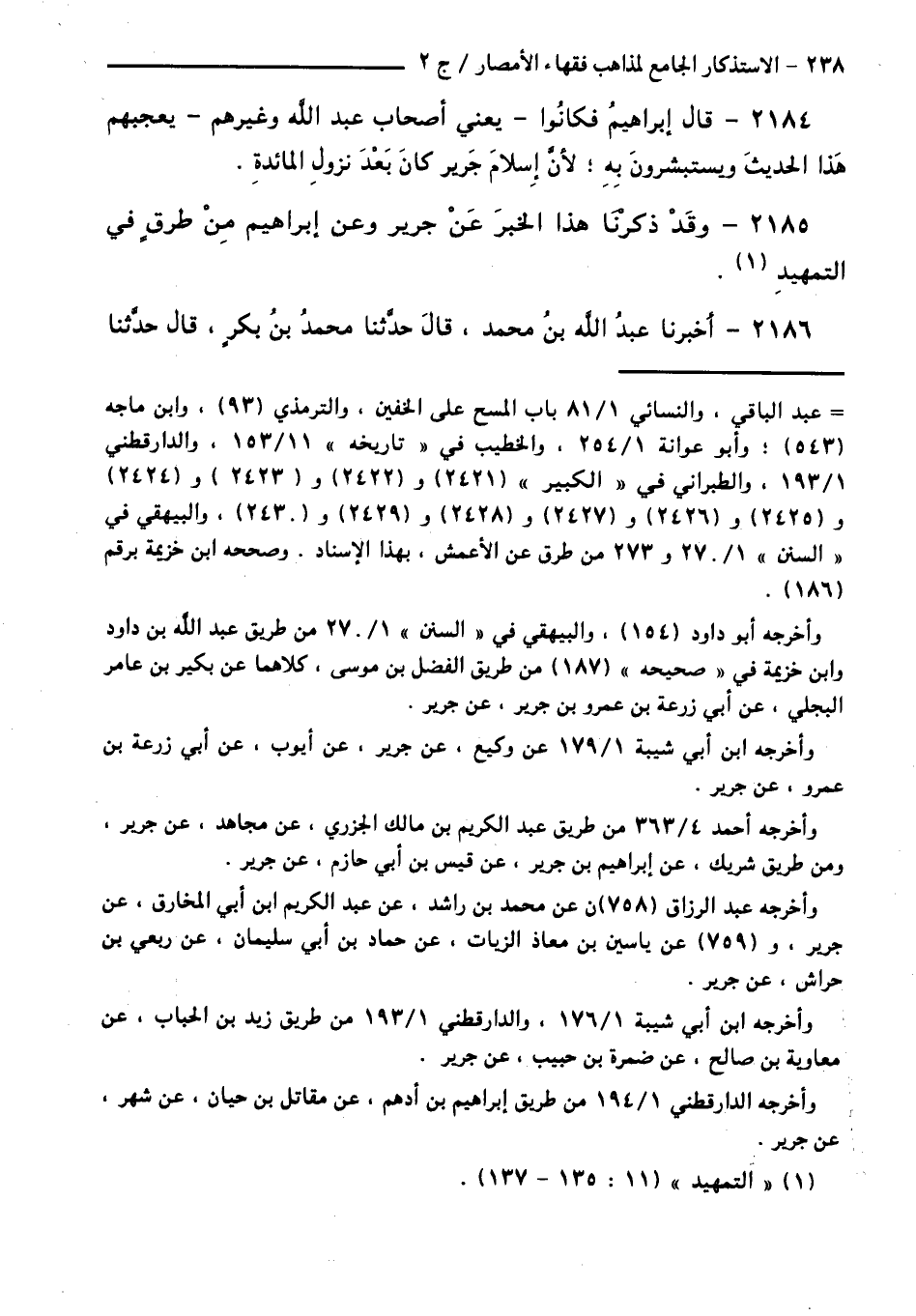 2185 - وَقَدْ ذَكَرْنَا هَذَا الْخَبَرَ عَنْ جَرِيرٍ وَعَنْ إِبْرَاهِيمَ مِنْ طُرُقٍ فِي التَّمْهِيدِ.