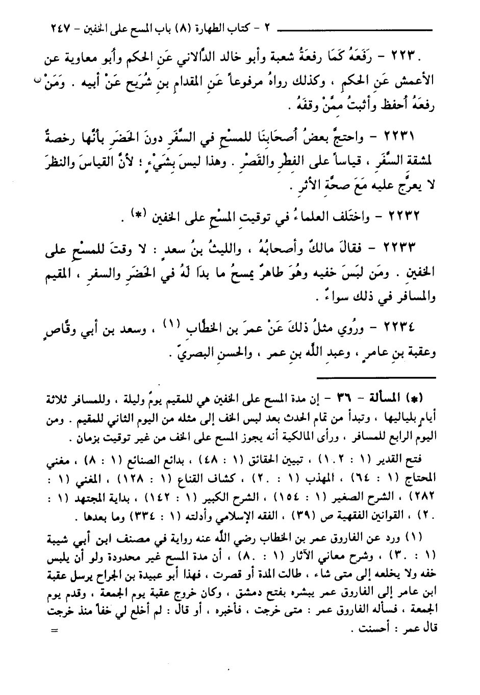 2232 - وَاخْتَلَفَ الْعُلَمَاءُ فِي تَوْقِيتِ الْمَسْحِ عَلَى الْخُفَّيْنِ.