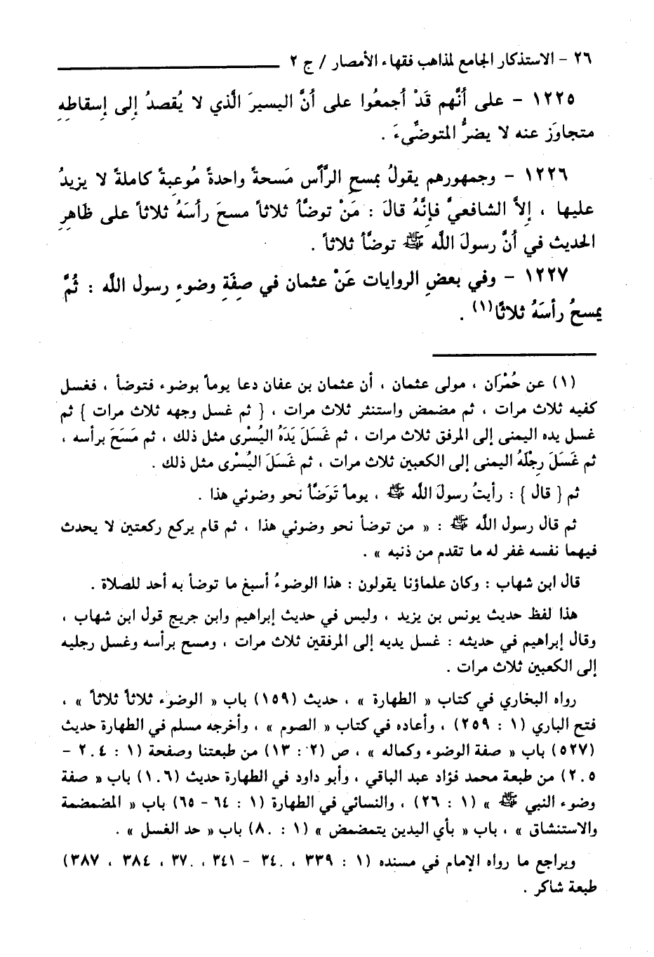 1225 - عَلَى أَنَّهُمْ قَدْ أَجْمَعُوا عَلَى أَنَّ الْيَسِيرَ لَا يُقْصَدُ إِلَى إِسْقَاطِهِ مُتَجَاوَزٌ عَنْهُ لَا يَضُرُّ الْمُتَوَضِّئَ.