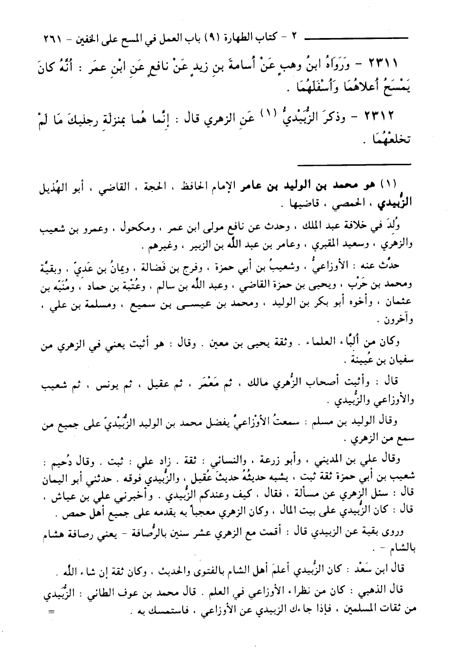 2312 - وَذَكَرَ الزُّبَيْدِيُّ عَنِ الزُّهْرِيِّ قَالَ: إِنَّمَا هُمَا بِمَنْزِلَةِ رِجْلَيْكَ مَا لَمْ تَخْلَعْهُمَا.