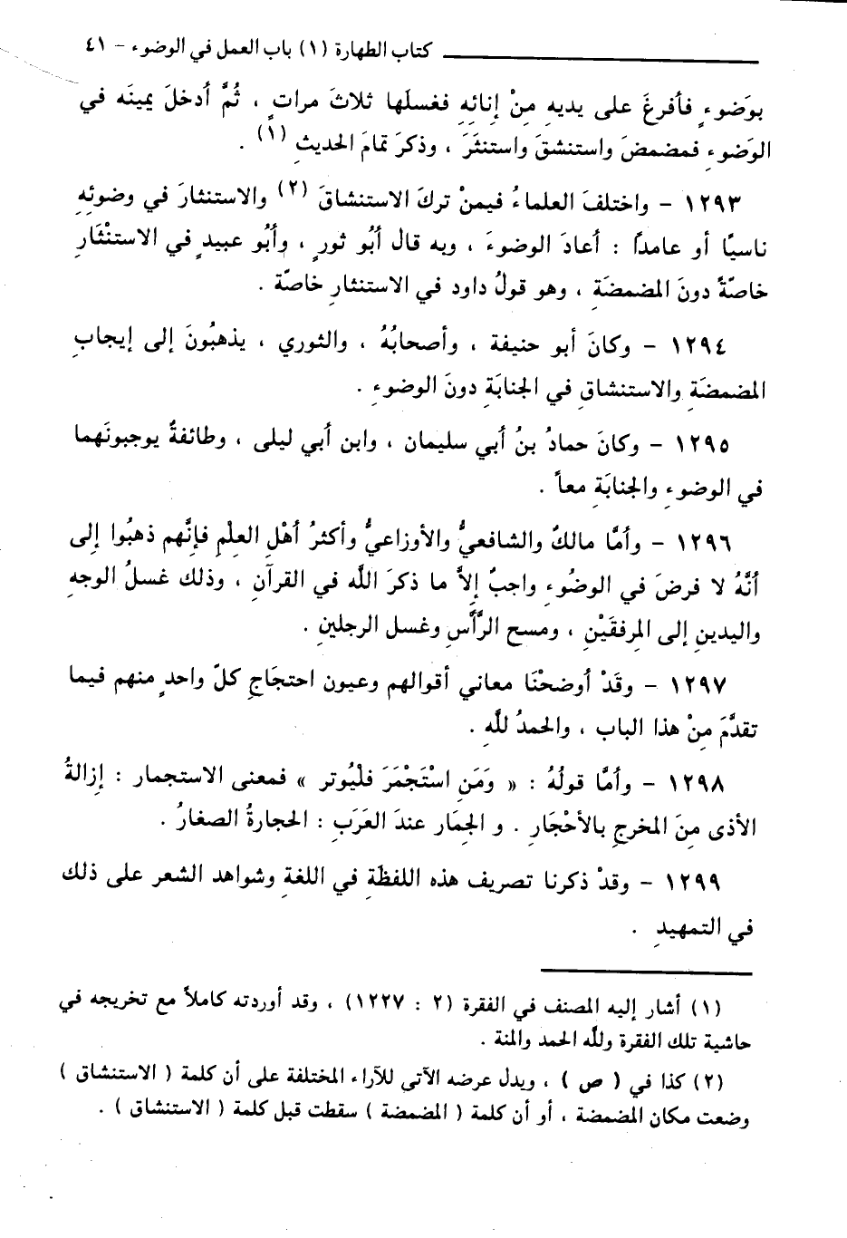 1295 - وَكَانَ حَمَّادُ بْنُ أَبِي سُلَيْمَانَ، وَابْنُ أَبِي لَيْلَى، وَطَائِفَةٌ يُوجِبُونَهُمَا فِي الْوُضُوءِ وَالْجَنَابَةِ مَعًا.