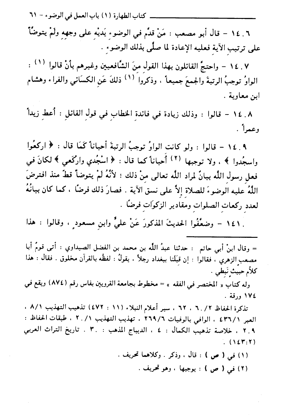 1407 - وَاحْتَجَّ الْقَائِلُونَ بِهَذَا الْقَوْلِ مِنَ الشَّافِعِيِّينَ وَغَيْرِهِمْ بِأَنْ قَالُوا: الْوَاوُ تُوجِبُ الرُّتْبَةَ وَالْجَمْعَ جَمِيعًا، وَذَكَرُوا ذَلِكَ عَنِ الْكِسَائِيِّ، وَالْفَرَّاءِ، وَهِشَامِ بْنِ مُعَاوِيَةَ.