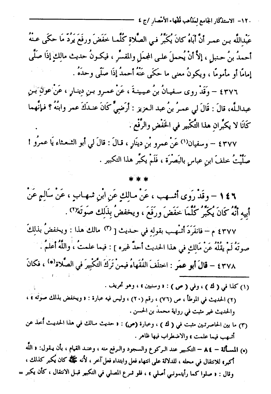 كتاب الاستذكار الجامع لمذاهب فقهاء الأمصار - ت: قلعجي (اسم الجزء: 4)