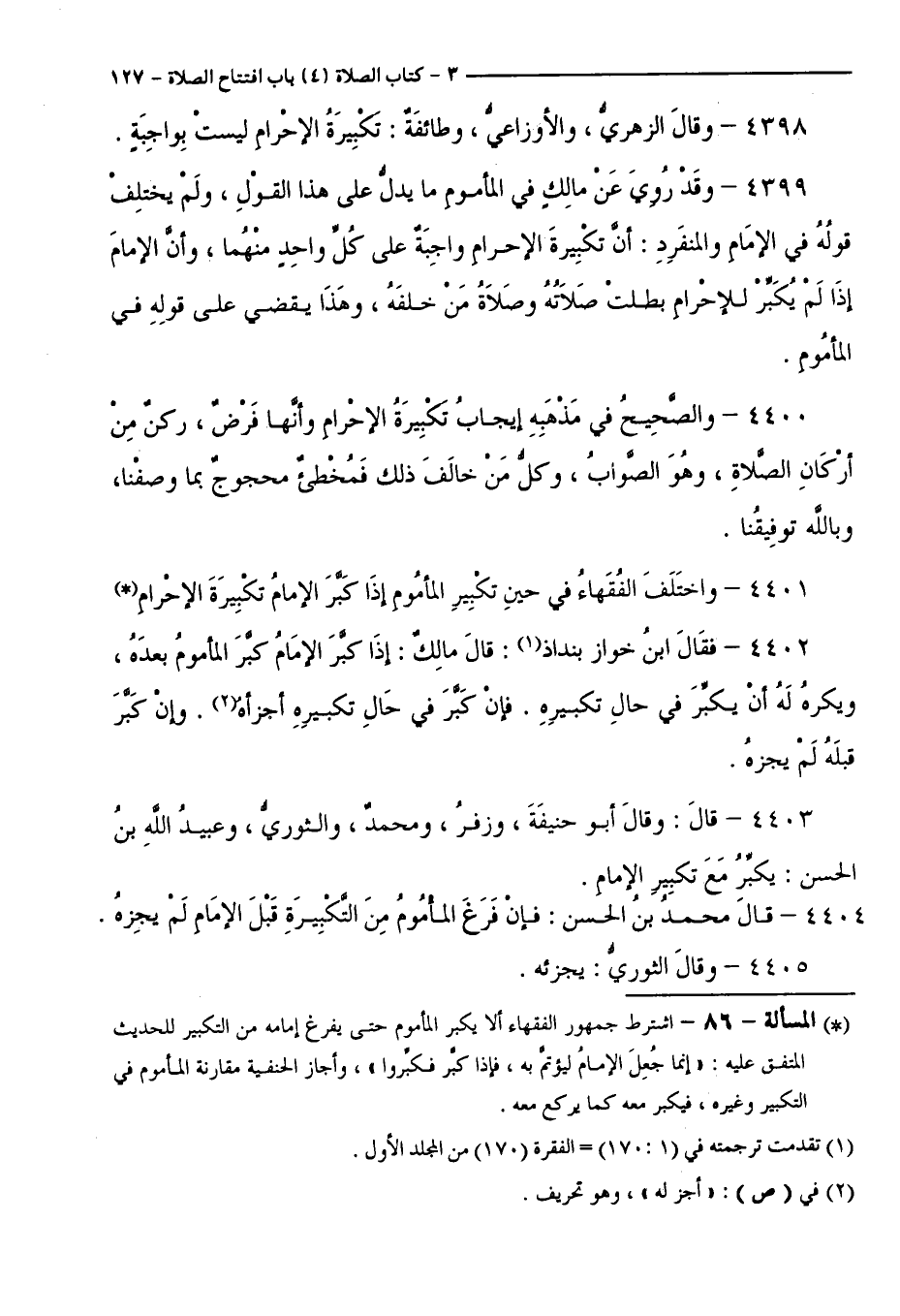 4398 - وَقَالَ الزُّهْرِيُّ، وَالْأَوْزَاعِيُّ، وَطَائِفَةٌ -: تَكْبِيرَةُ الْإِحْرَامِ لَيْسَتْ بِوَاجِبَةٍ.