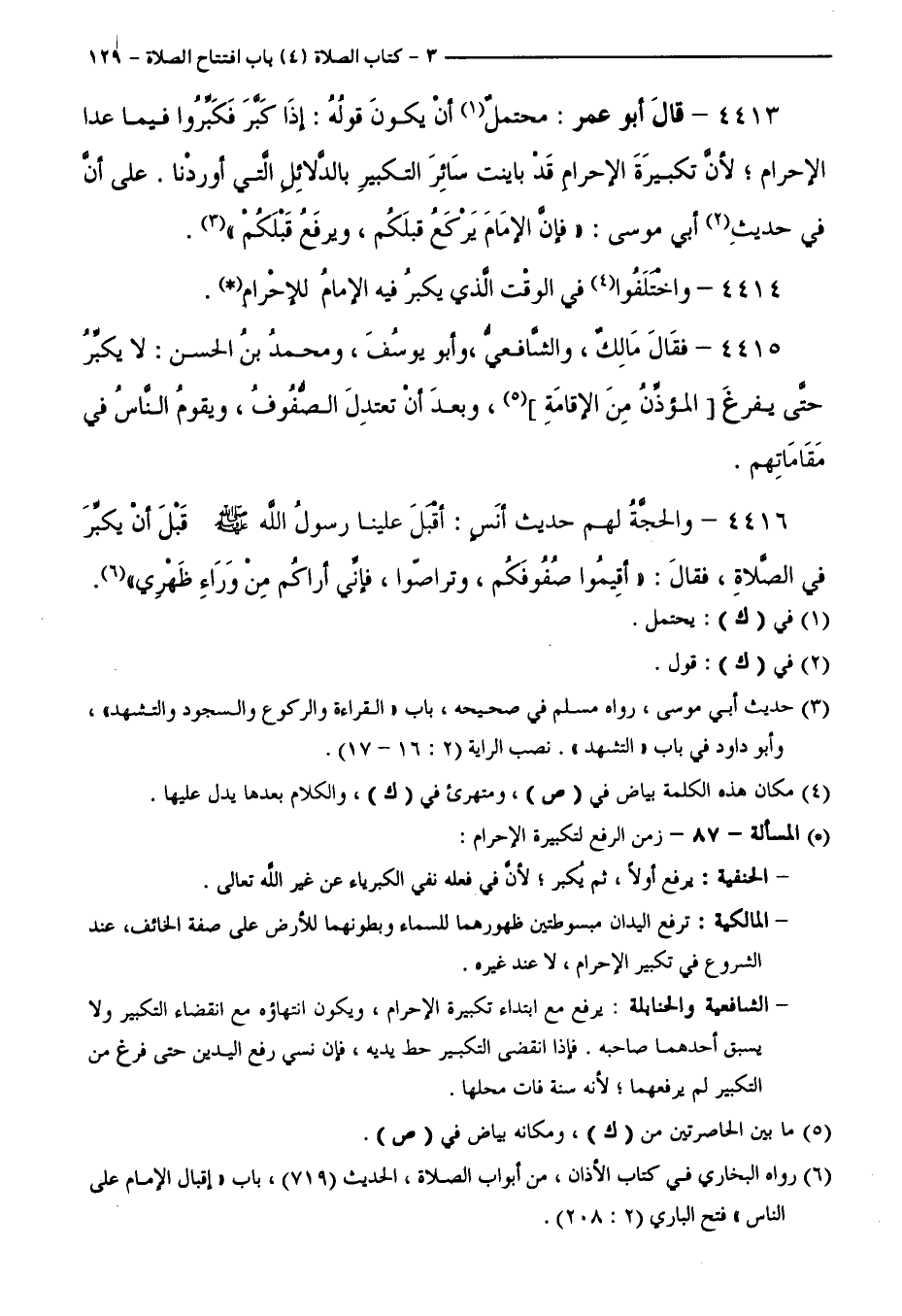 4414 - وَاخْتَلَفُوا فِي الْوَقْتِ الَّذِي يُكَبِّرُ فِيهِ الْإِمَامُ لِلْإِحْرَامِ.