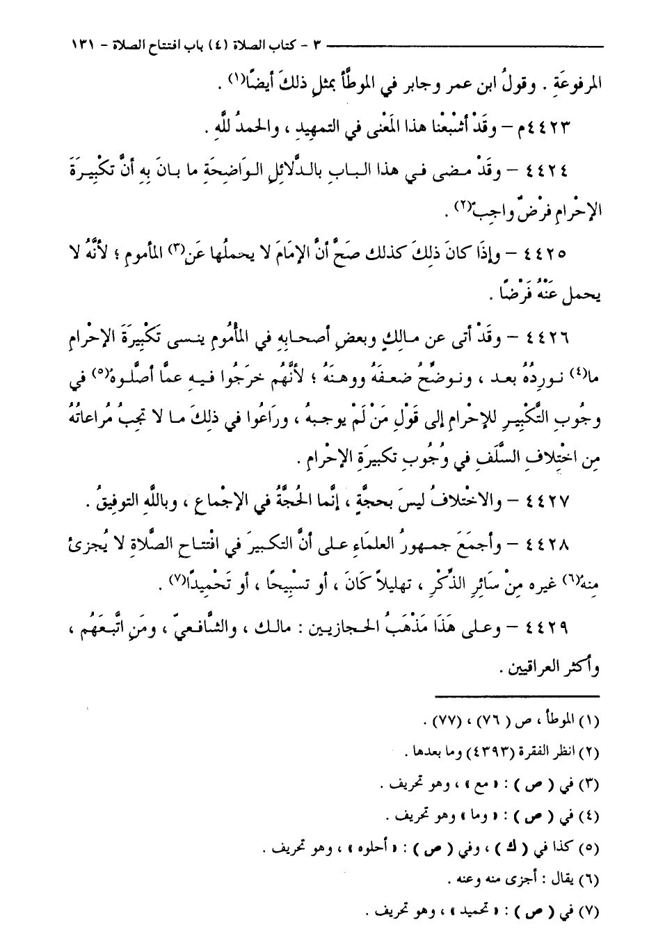 4424 - وَقَدْ مَضَى فِي هَذَا الْبَابِ بِالدَّلَائِلِ الْوَاضِحَةِ مَا بَانَ بِهِ أَنَّ تَكْبِيرَةَ الْإِحْرَامِ فَرْضٌ وَاجِبٌ.