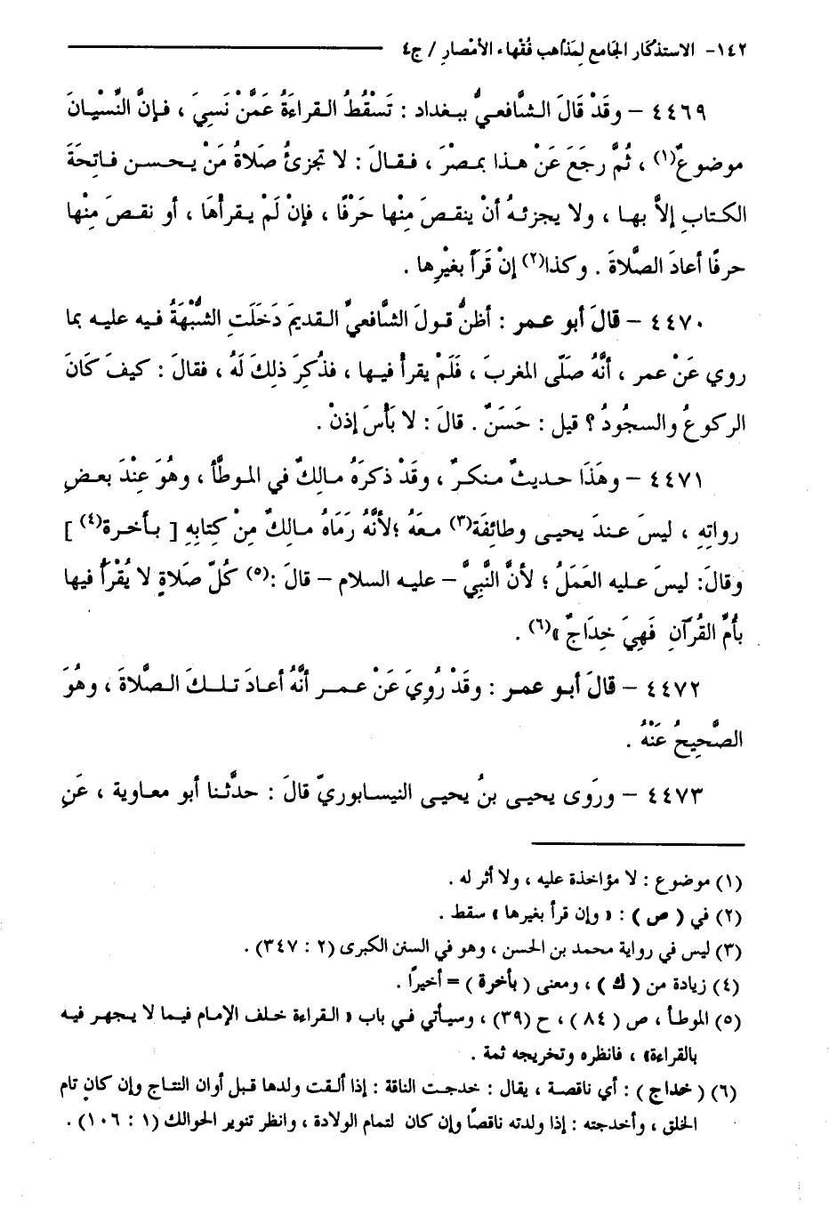 كتاب الاستذكار الجامع لمذاهب فقهاء الأمصار - ت: قلعجي (اسم الجزء: 4)