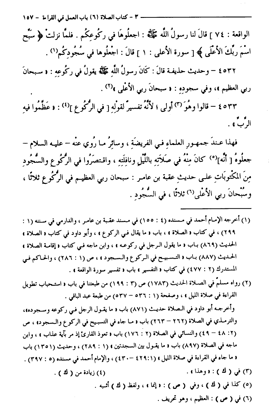 فَهَذَا عِنْدَ جُمْهُورِ الْعُلَمَاءِ فِي الْفَرِيضَةِ، وَسَائِرُ مَا رُوِيَ عَنْهُ - عَلَيْهِ السَّلَامُ - جَعَلُوهُ أَنَّهُ كَانَ مِنْهُ فِي صَلَاتِهِ بِاللَّيْلِ وَنَافِلَتِهِ، وَاقْتَصَرُوا فِي الرُّكُوعِ وَالسُّجُودِ مِنَ الْمَكْتُوبَاتِ عَلَى حَدِيثِ عُقْبَةَ بْنِ عَامِرٍ: سُبْحَانَ رَبِّيَ الْعَظِيمِ فِي الرُّكُوعِ، ثَلَاثًا، وَسُبْحَانَ رَبِّيَ الْأَعْلَى، ثَلَاثًا فِي السُّجُودِ.