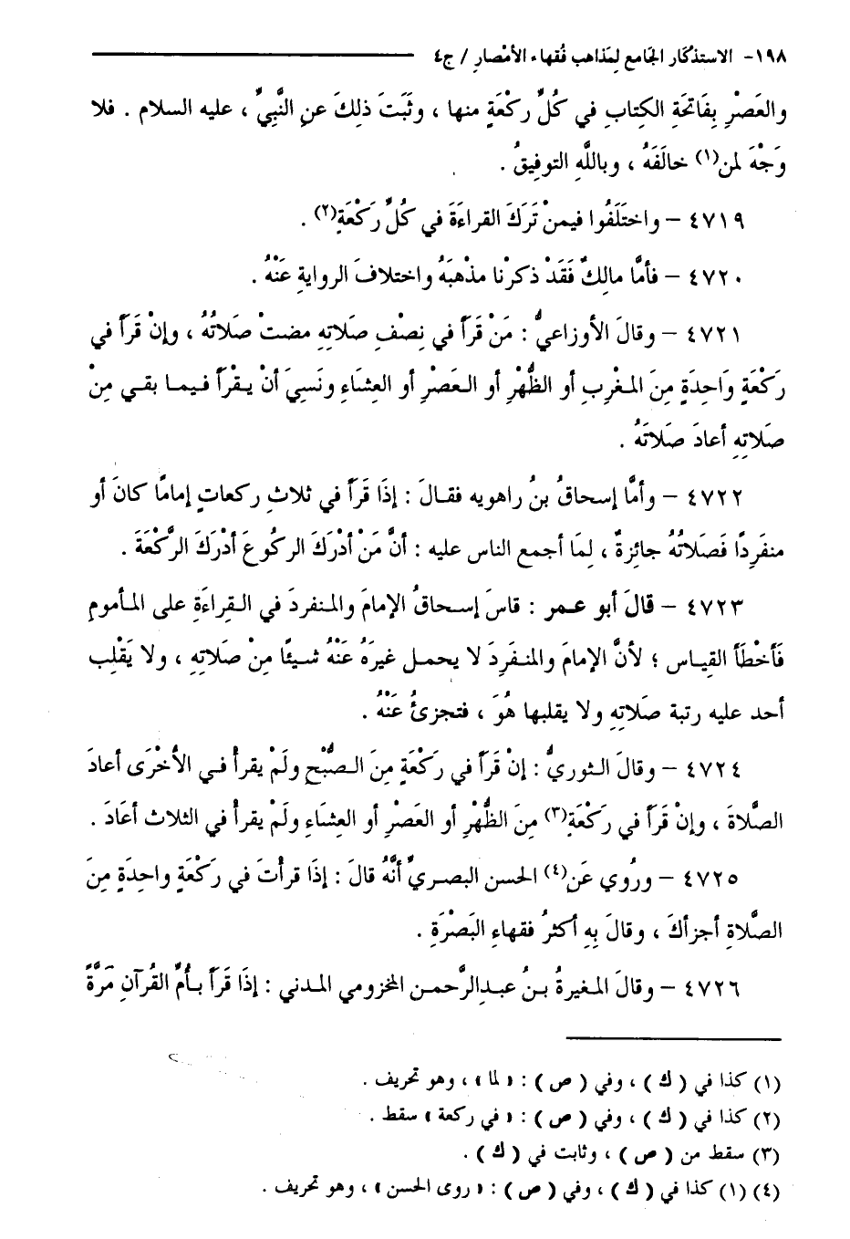 4719 - وَاخْتَلَفُوا فِيمَنْ تَرَكَ الْقِرَاءَةَ فِي كُلِّ رَكْعَةٍ.