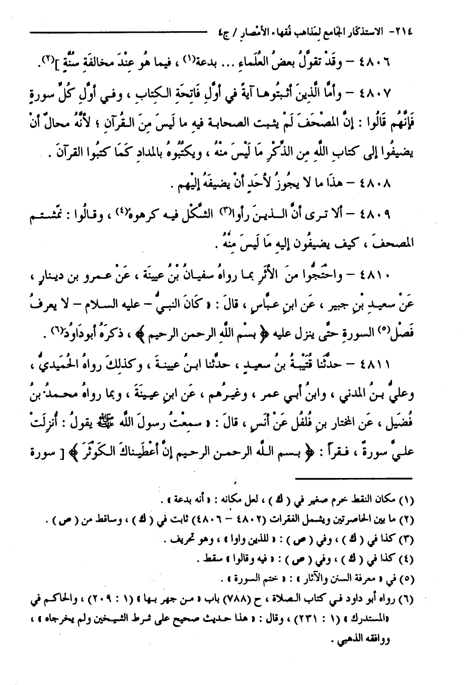 كتاب الاستذكار الجامع لمذاهب فقهاء الأمصار - ت: قلعجي (اسم الجزء: 4)