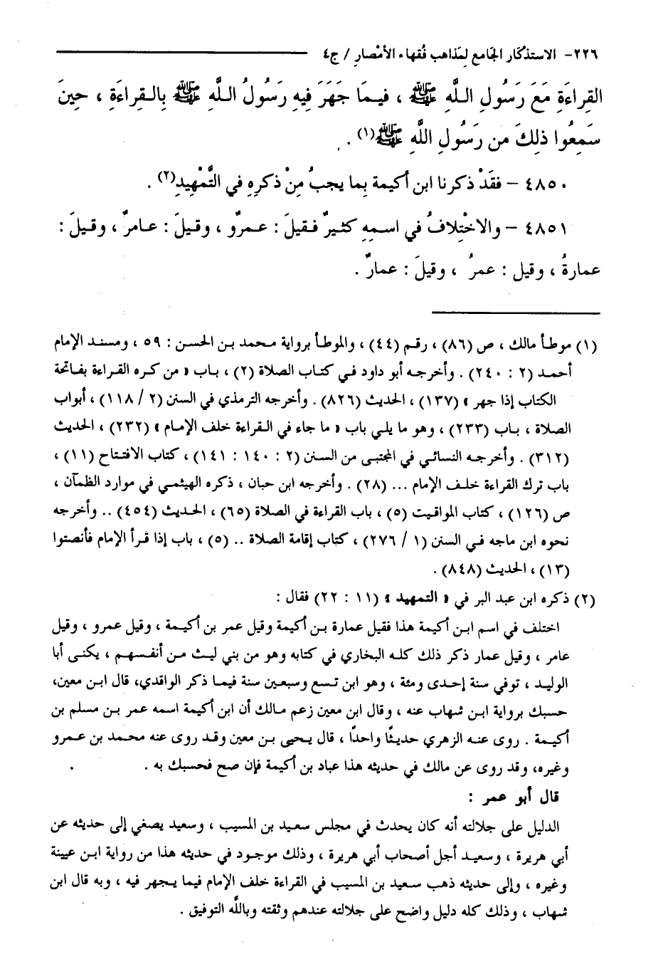 كتاب الاستذكار الجامع لمذاهب فقهاء الأمصار - ت: قلعجي (اسم الجزء: 4)