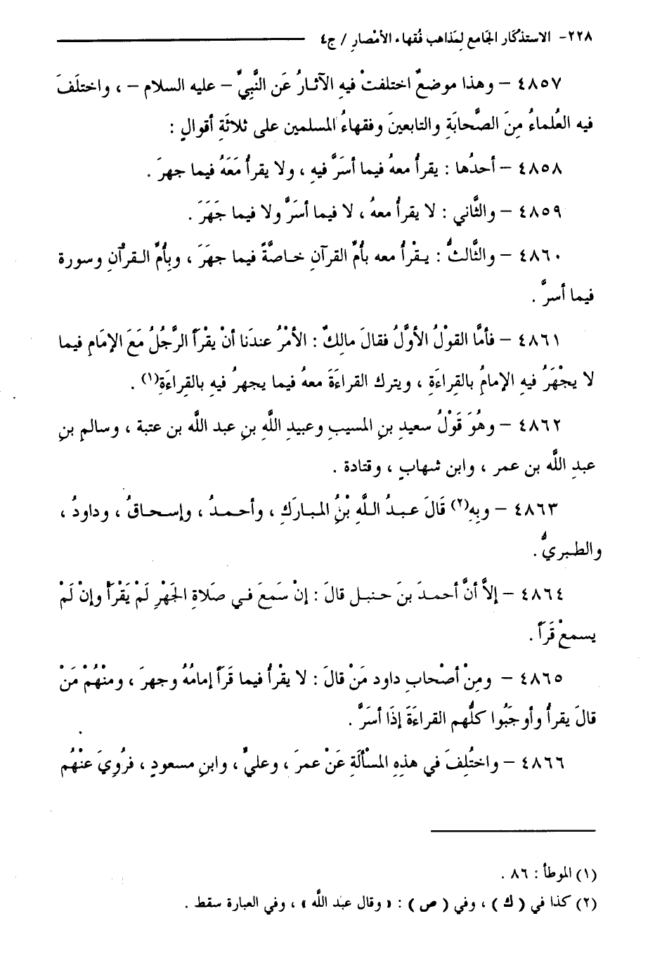 كتاب الاستذكار الجامع لمذاهب فقهاء الأمصار - ت: قلعجي (اسم الجزء: 4)