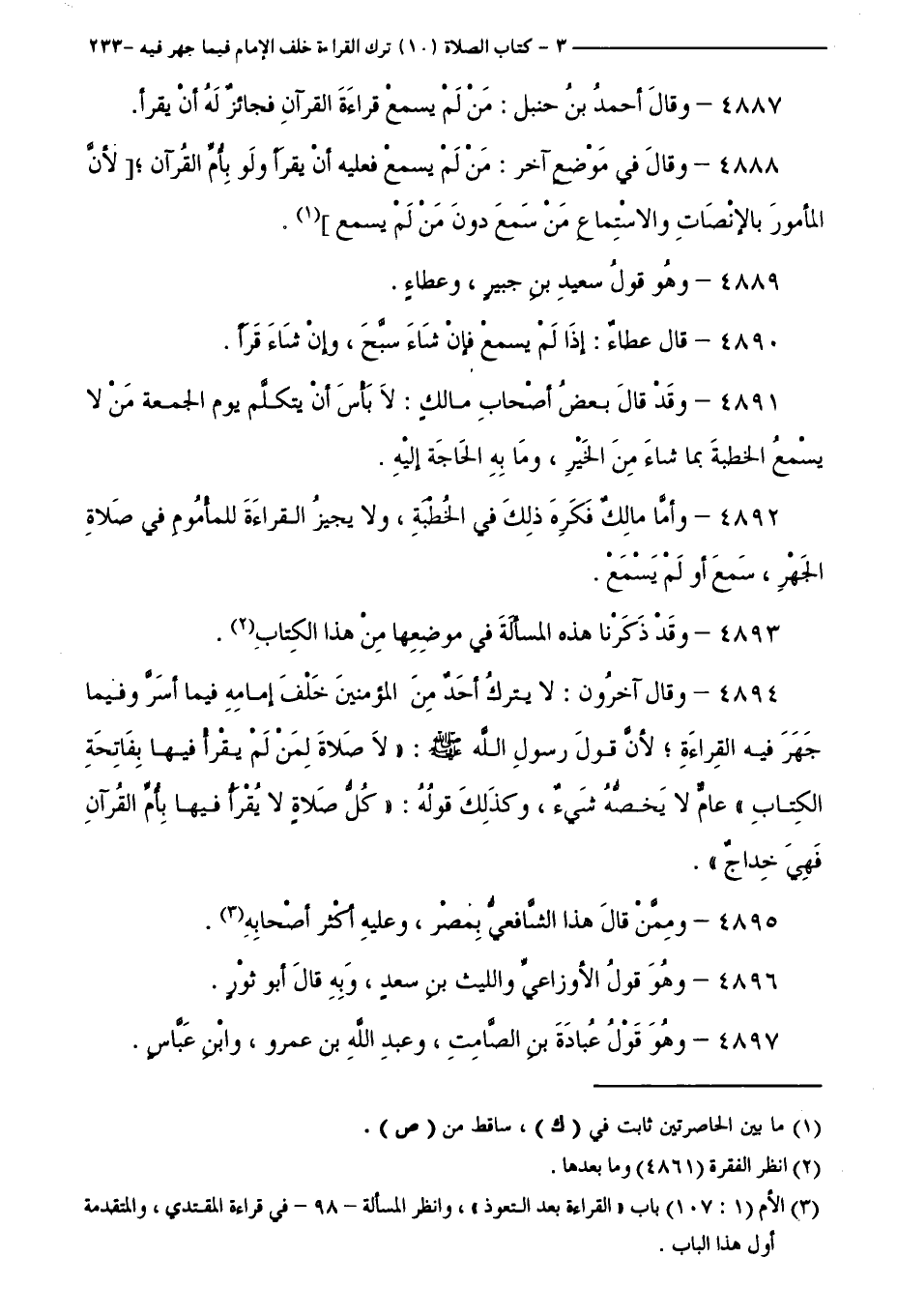 4892 - وَأَمَّا مَالِكٌ فَكَرَهَ ذَلِكَ فِي الْخُطْبَةِ، وَلَا يُجِيزُ الْقِرَاءَةَ لِلْمَأْمُومِ فِي صَلَاةِ الْجَهْرِ، سَمِعَ، أَوْ لَمْ يَسْمَعْ.