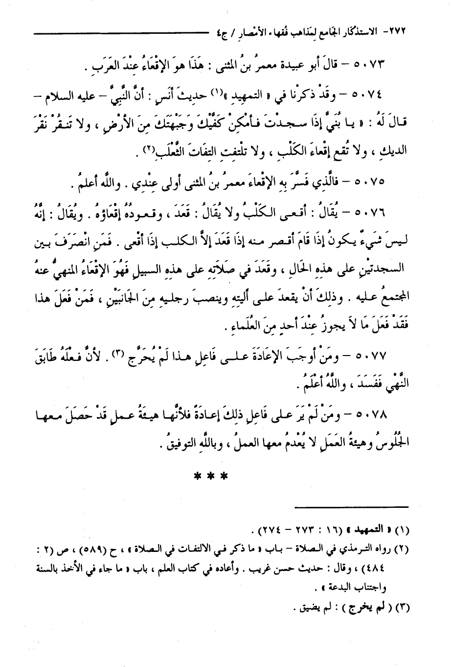 كتاب الاستذكار الجامع لمذاهب فقهاء الأمصار - ت: قلعجي (اسم الجزء: 4)