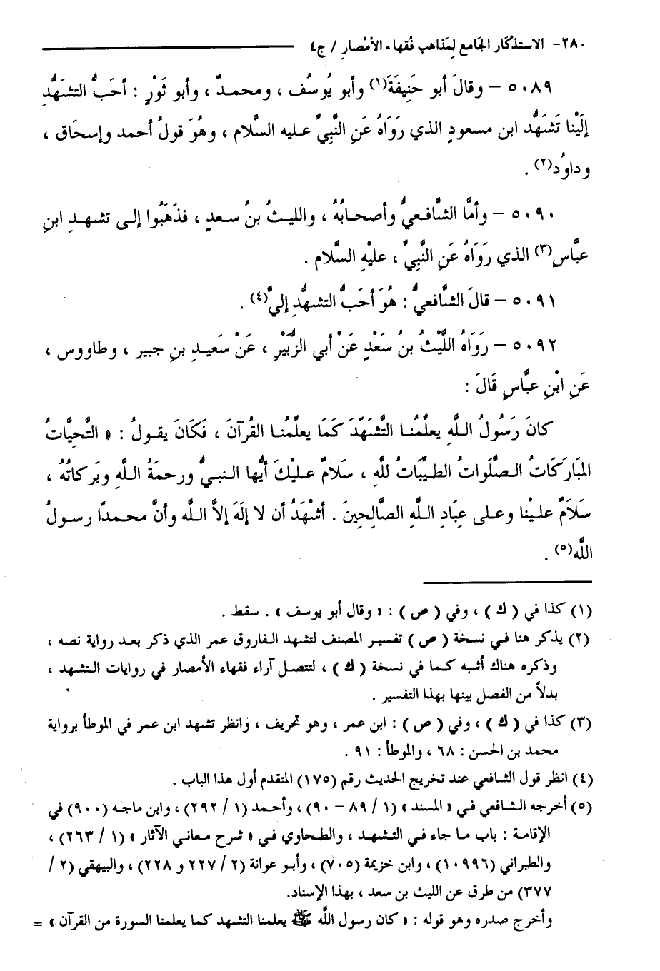 5090 - وَأَمَّا الشَّافِعِيُّ وَأَصْحَابُهُ، وَاللَّيْثُ بْنُ سَعْدٍ - فَذَهَبُوا إِلَى تَشَهُّدِ ابْنِ عَبَّاسٍ الَّذِي رَوَاهُ عَنِ النَّبِيِّ - عَلَيْهِ السَّلَامُ -.