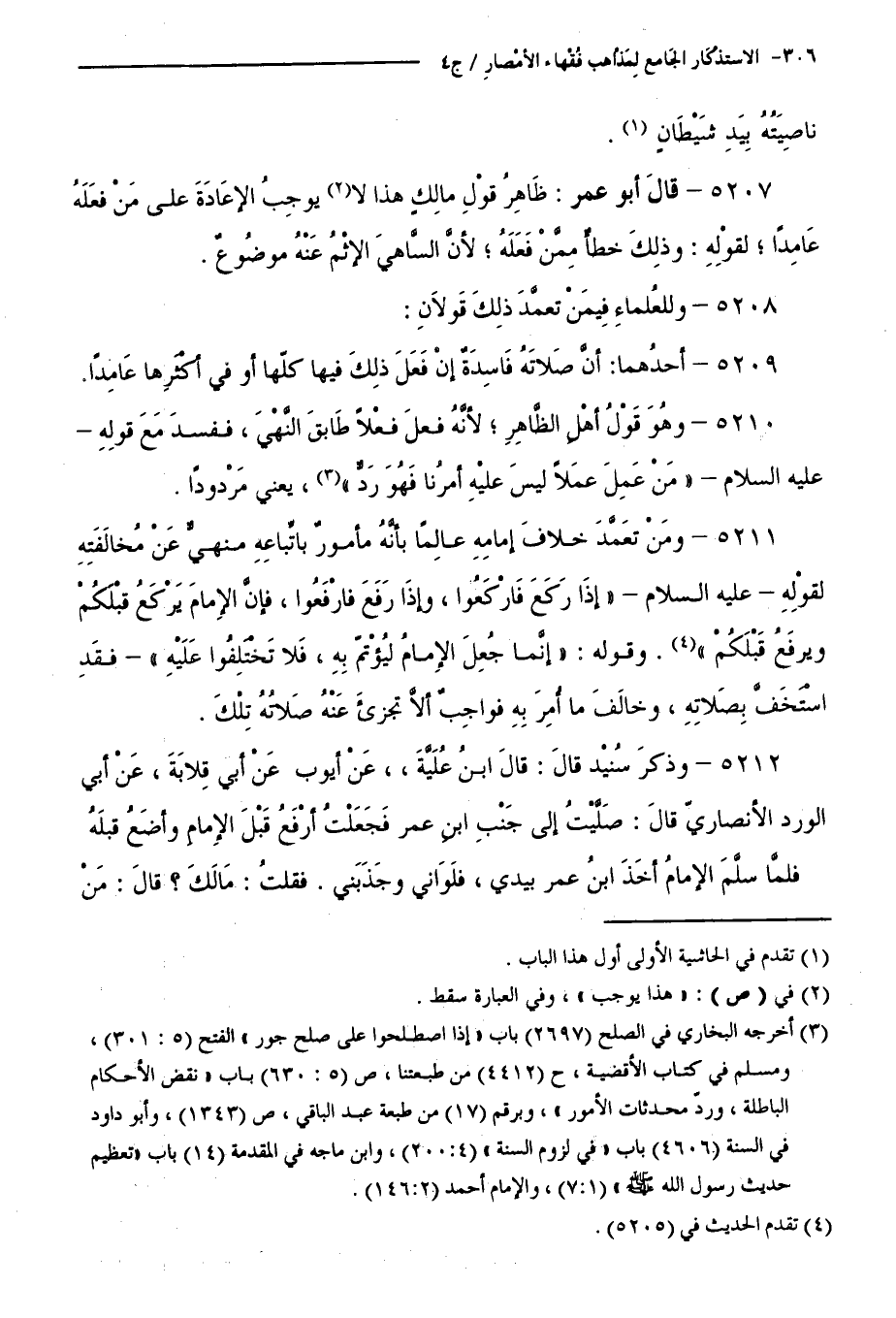 5207 - قَالَ أَبُو عُمَرَ: ظَاهِرُ قَوْلِ مَالِكٍ هَذَا لَا يُوجِبُ الْإِعَادَةَ عَلَى مَنْ فَعَلَهُ عَامِدًا ; لِقَوْلِهِ: وَذَلِكَ خَطَأٌ مِمَّنْ فَعَلَهُ ; لِأَنَّ السَّاهِيَ الْإِثْمُ عَنْهُ مَوْضُوعٌ.