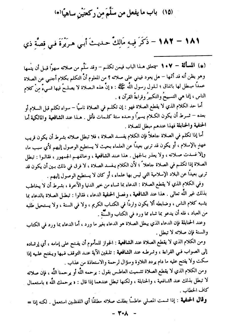 181 - 182 - ذَكَرَ فِيهِ مَالِكٌ حَدِيثَ أَبِي هُرَيْرَةَ فِي قِصَّةِ ذِي