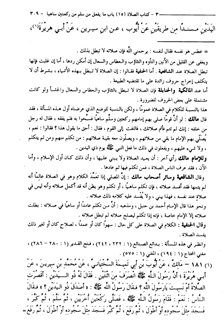 الْيَدَيْنِ مُسْنَدًا مِنْ طَرِيقَيْنِ: عَنْ أَيُّوبَ، عَنِ ابْنِ سِيرِينَ، عَنْ أَبِي هُرَيْرَةَ،
