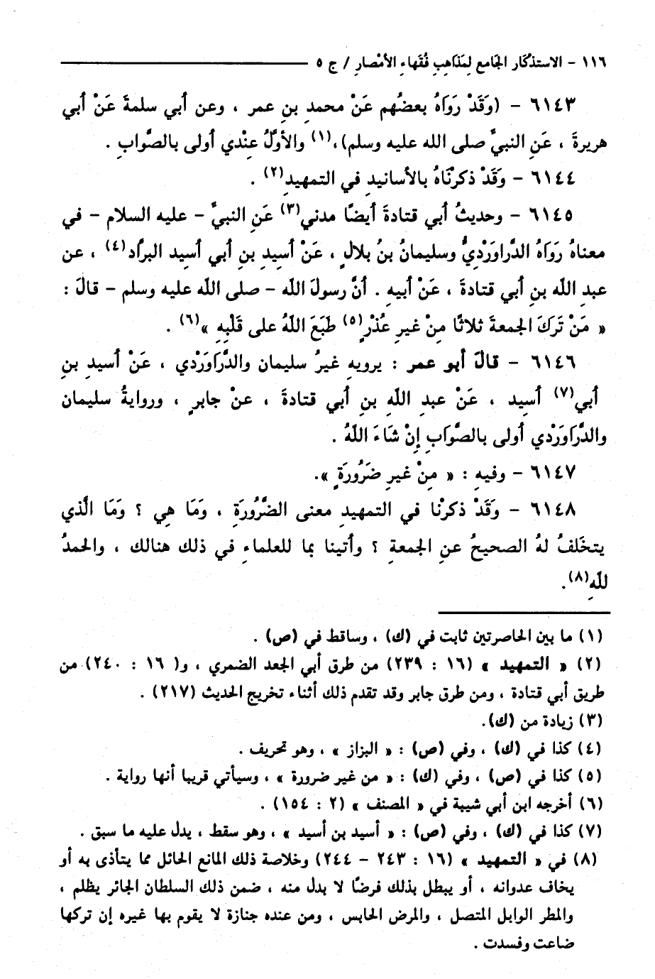كتاب الاستذكار الجامع لمذاهب فقهاء الأمصار - ت: قلعجي (اسم الجزء: 5)
