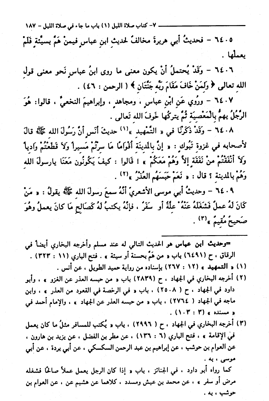 6408 - وَقَدْ ذَكَرْنَا فِي " التَّمْهِيدِ " حَدِيثَ أَنَسٍأَنَّ رَسُولَ اللَّهِ - صَلَّى اللَّهُ عَلَيْهِ وَسَلَّمَ - قَالَ لِأَصْحَابِهِ فِي غَزْوَةِ تَبُوكَ: " إِنَّ بِالْمَدِينَةِ أَقْوَامًا مَا سِرْتُمْ مَسِيرًا، وَلَا قَطَعْتُمْ وَادِيًا، وَلَا أَنْفَقْتُمْ مِنْ نَفَقَةٍ إِلَّا وَهُمْ مَعَكُمْ ". قَالُوا: كَيْفَ يَكُونُونَ مَعَنَا يَا رَسُولَ اللَّهِ وَهُمْ بِالْمَدِينَةِ ؟ قَالَ: " نَعَمْ حَبَسَهُمُ الْعُذْرُ ".