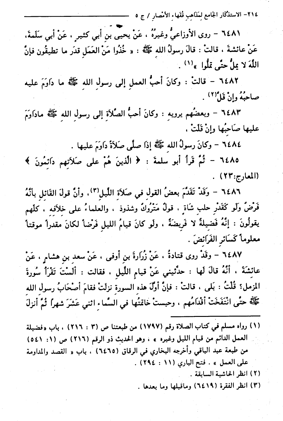 6483 - وَبَعْضُهُمْ يَرْوِيهِ:وَكَانَ أَحَبُّ الصَّلَاةِ إِلَى رَسُولِ اللَّهِ - صَلَّى اللَّهُ عَلَيْهِ وَسَلَّمَ - مَا دَاوَمَ عَلَيْهَا صَاحِبُهَا وَإِنْ قَلَّتْ.