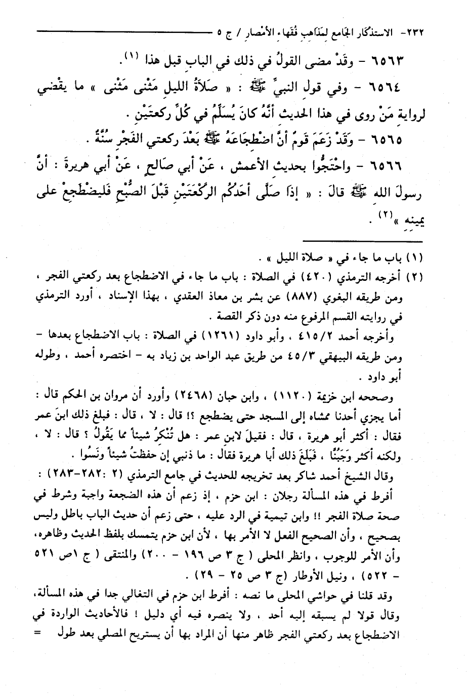 6565 - وَقَدْ زَعَمَ قَوْمٌ أَنَّ اضْطِجَاعَهُ - صَلَّى اللَّهُ عَلَيْهِ وَسَلَّمَ - بَعْدَ رَكْعَتَيِ الْفَجْرِ سُنَّةٌ.