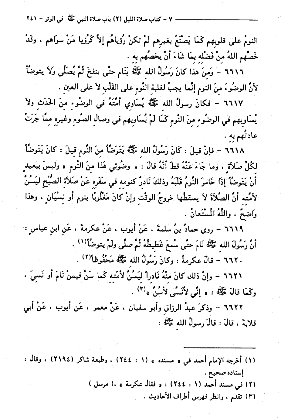 6617 - فَكَانَ رَسُولُ اللَّهِ - صَلَّى اللَّهُ عَلَيْهِ وَسَلَّمَ - يُسَاوِي أُمَّتَهُ فِي الْوُضُوءِ مِنَ الْحَدَثِ وَلَا يُسَاوِيهِمْ فِي الْوُضُوءِ مِنَ النَّوْمِ، كَمَا لَمْ يُسَاوِيهِمْ فِي وِصَالِ الصَّوْمِ وَغَيْرِهِ مِمَّا جَرَتْ عَادَتُهُمْ بِهِ.