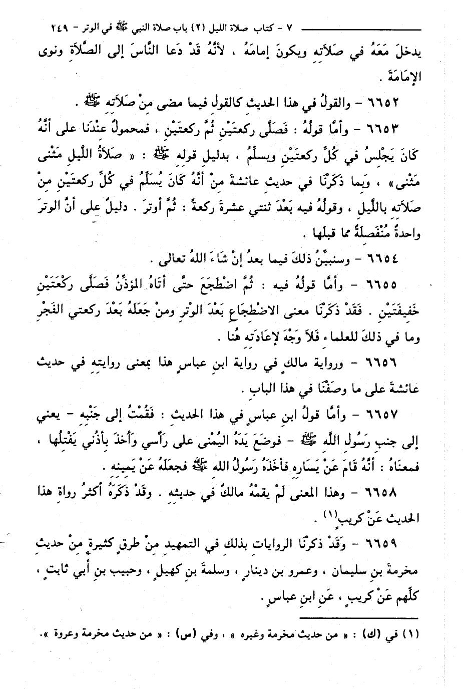 6658 - وَهَذَا الْمَعْنَى لَمْ يُقِمْهُ مَالِكٌ فِي حَدِيثِهِ. وَقَدْ ذَكَرَهُ أَكْثَرُ رُوَاةِ هَذَا الْحَدِيثِ عَنْ كُرَيْبٍ.