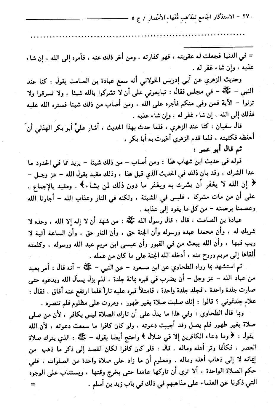 كتاب الاستذكار الجامع لمذاهب فقهاء الأمصار - ت: قلعجي (اسم الجزء: 5)