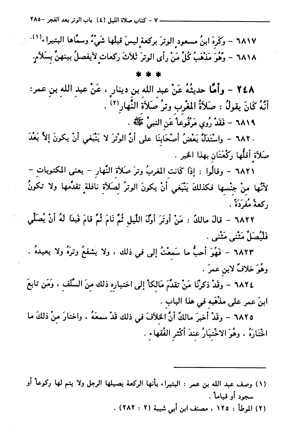 248 - وَأَمَّا حَدِيثُهُ عَنْ عَبْدِ اللَّهِ بْنِ دِينَارٍ، عَنْ عَبْدِ اللَّهِ بْنِ عُمَرَ، أَنَّهُ كَانَ يَقُولُ: صَلَاةُ الْمَغْرِبِ وِتْرُ صَلَاةِ النَّهَارِ.