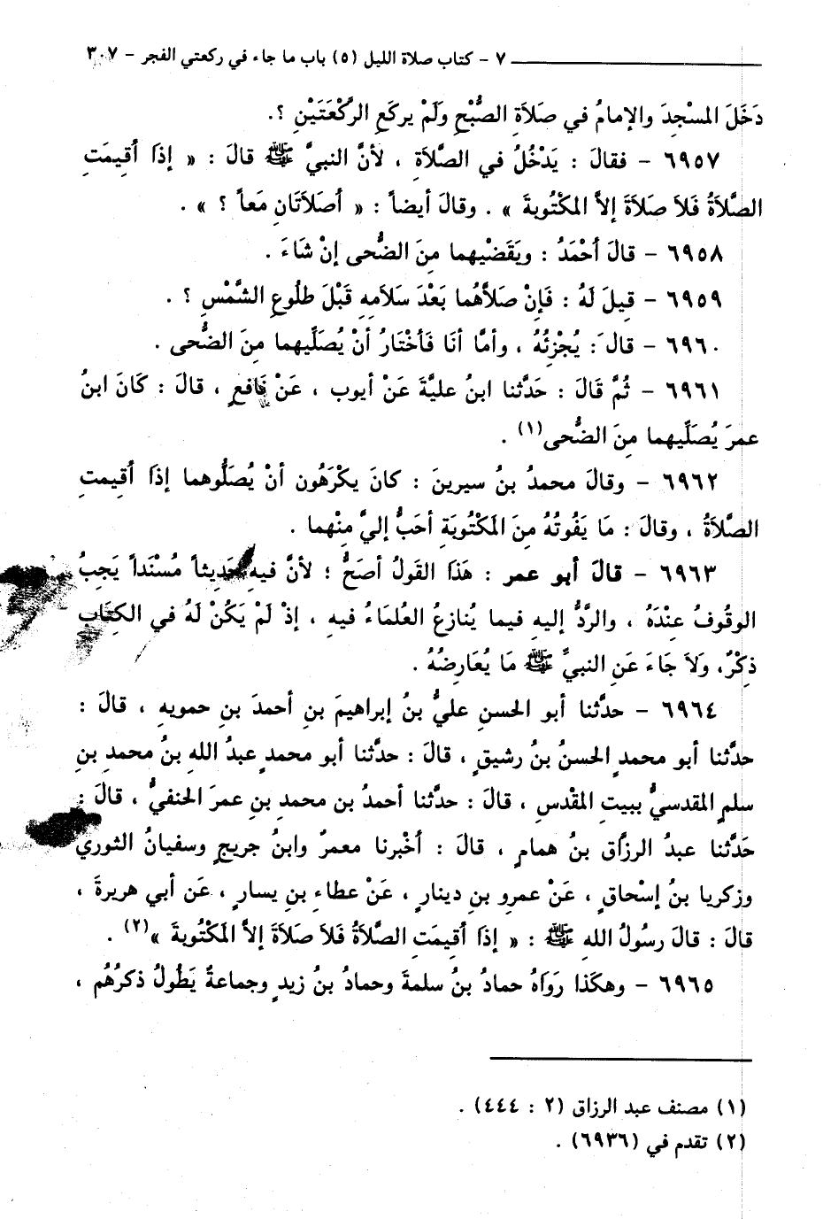 6961 - ثُمَّ قَالَ: حَدَّثَنَا ابْنُ عُلَيَّةَ، عَنْ أَيُّوبَ، عَنْ نَافِعٍ، قَالَ: كَانَ ابْنُ عُمَرَ يُصَلِّيهِمَا مِنَ الضُّحَى.