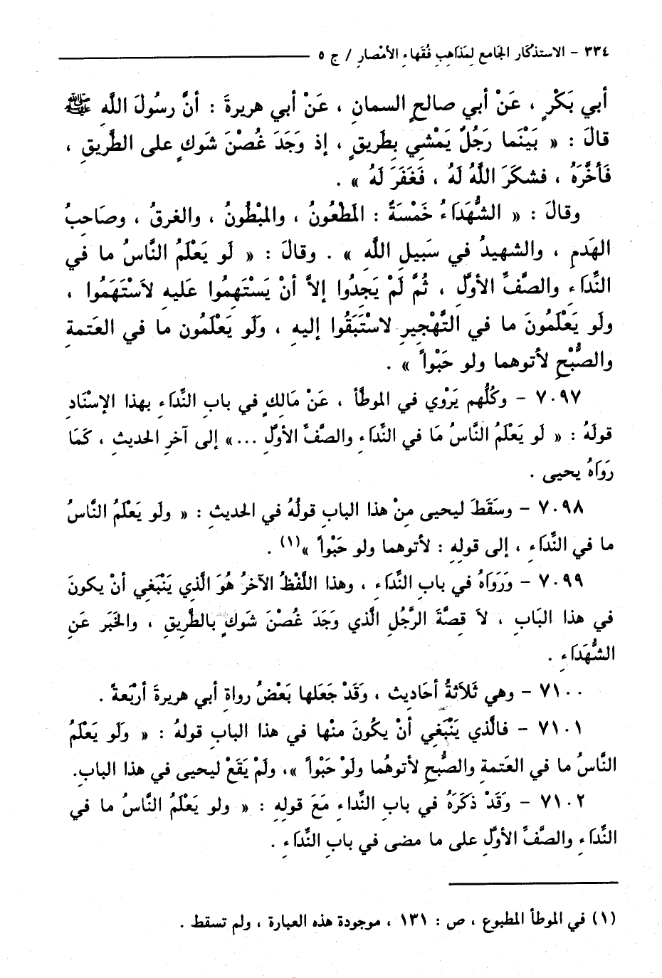 كتاب الاستذكار الجامع لمذاهب فقهاء الأمصار - ت: قلعجي (اسم الجزء: 5)