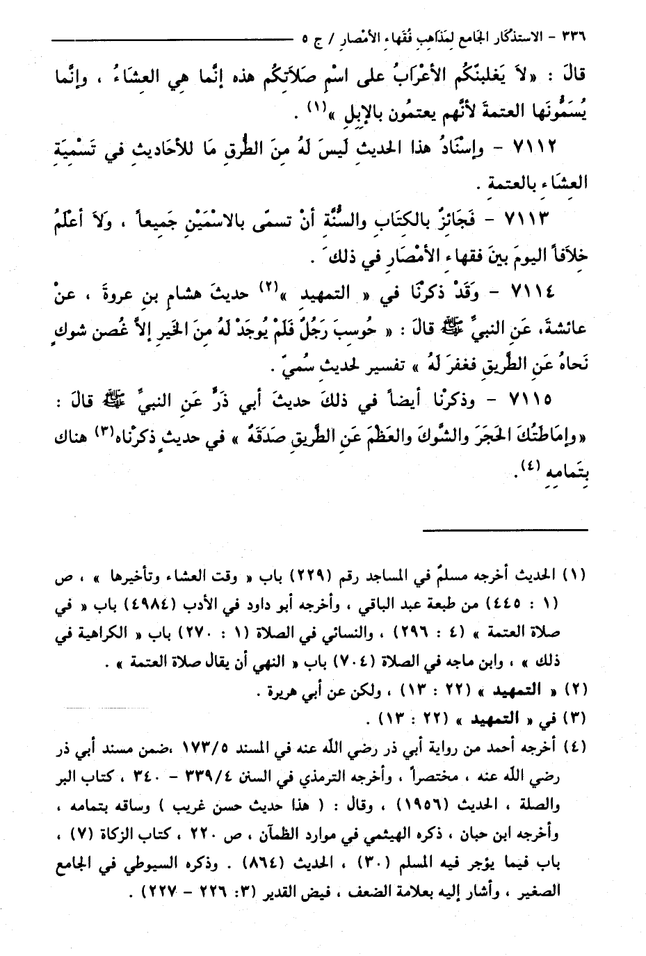 7112 - وَإِسْنَادُ هَذَا الْحَدِيثِ لَيْسَ لَهُ مِنَ الطُّرُقِ مَا لِلْأَحَادِيثِ فِي تَسْمِيَةِ الْعِشَاءِ بِالْعَتَمَةِ.