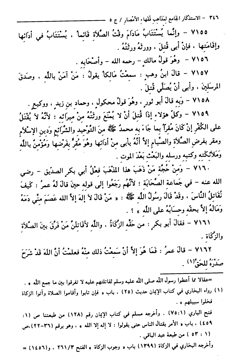 كتاب الاستذكار الجامع لمذاهب فقهاء الأمصار - ت: قلعجي (اسم الجزء: 5)