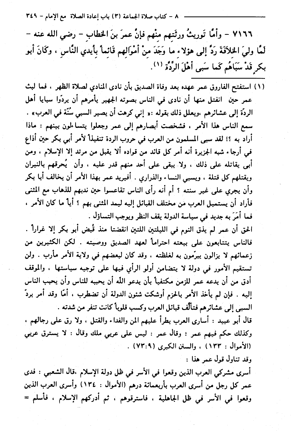 7166 - وَأَمَّا تَوْرِيثُ وَرَثَتِهِمْ مِنْهُمْ فَإِنَّ عُمَرَ بْنَ الْخَطَّابِ - رَضِيَ اللَّهُ عَنْهُ - لَمَّا وَلِيَ الْخِلَافَةَ رَدَّ إِلَى هَؤُلَاءِ مَا وَجَدَ مِنْ أَمْوَالِهِمْ قَائِمًا بِأَيْدِي النَّاسِ، وَكَانَ أَبُو بَكْرٍ قَدْ سَبَاهُمْ كَمَا سَبَى أَهْلَ الرِّدَّةِ.