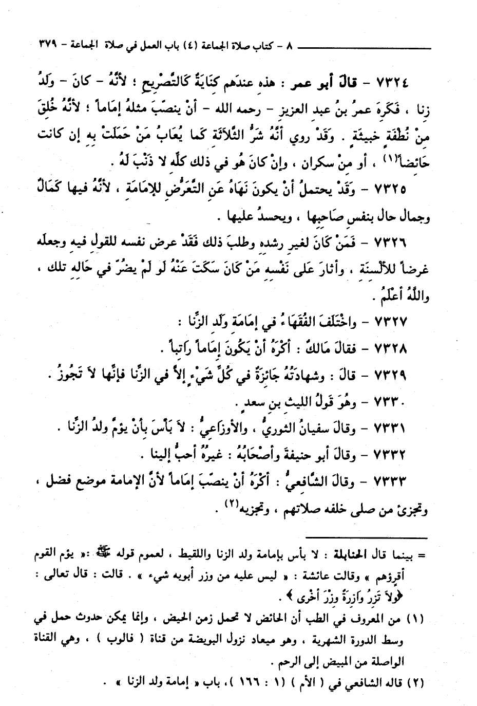 7327 - وَاخْتَلَفَ الْفُقَهَاءُ فِي إِمَامَةِ وَلَدِ الزِّنَى.