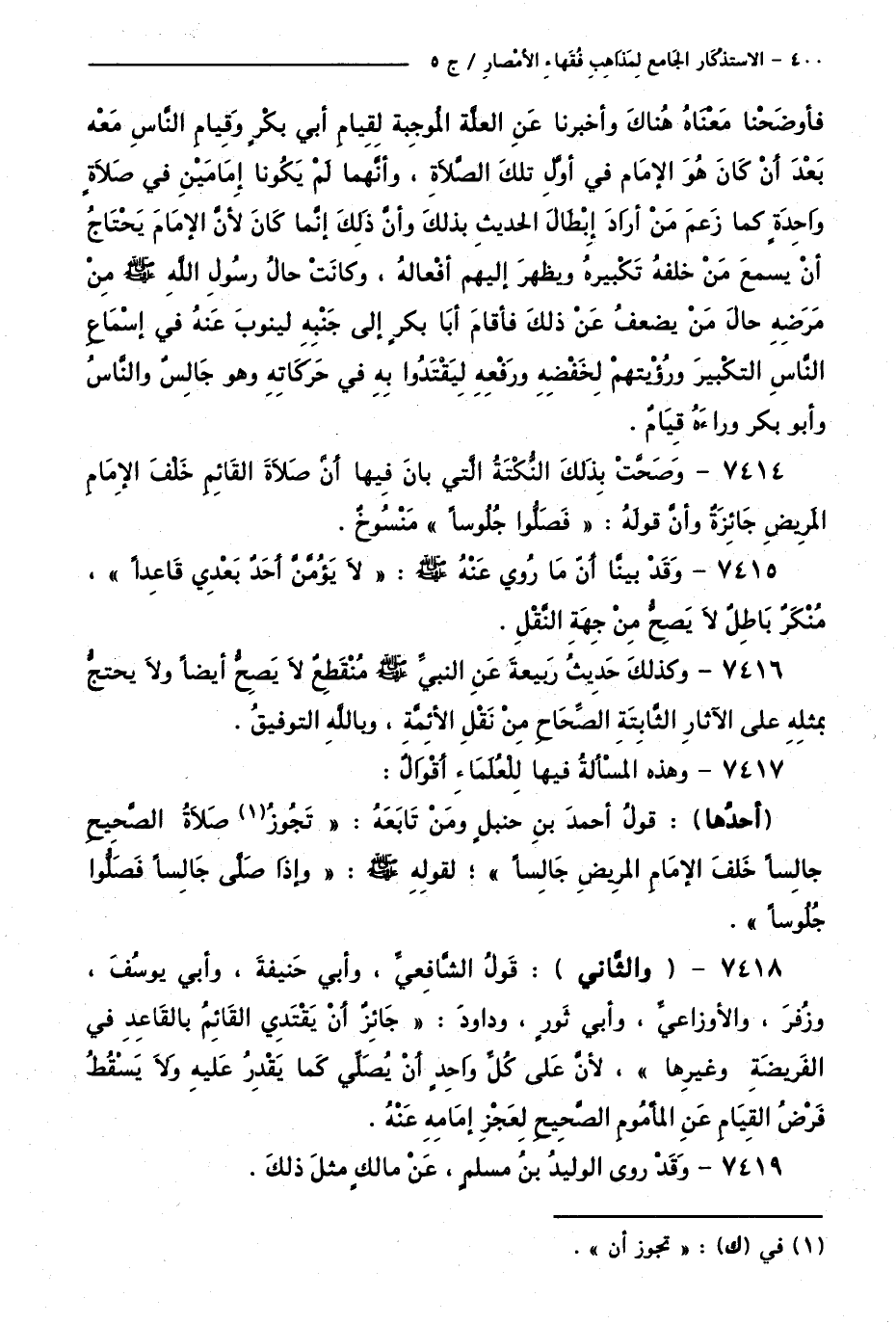 كتاب الاستذكار الجامع لمذاهب فقهاء الأمصار - ت: قلعجي (اسم الجزء: 5)