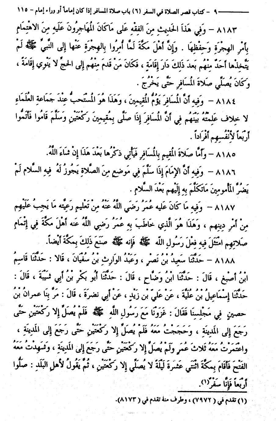 8185 - وَأَمَّا صَلَاةُ الْمُقِيمِ بِالْمُسَافِرِ، فَيَأْتِي ذِكْرُهَا بَعْدَ هَذَا إِنْ شَاءَ اللَّهُ.
