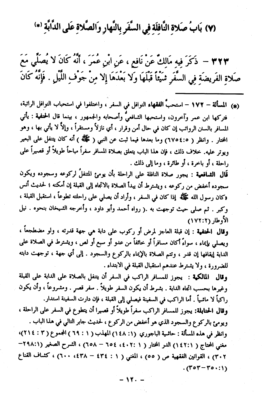 ( 7) بَابُ صَلَاةِ النَّافِلَةِ فِي السَّفَرِ بِالنَّهَارِ وَالصَّلَاةِ عَلَى الدَّابَّةِ.