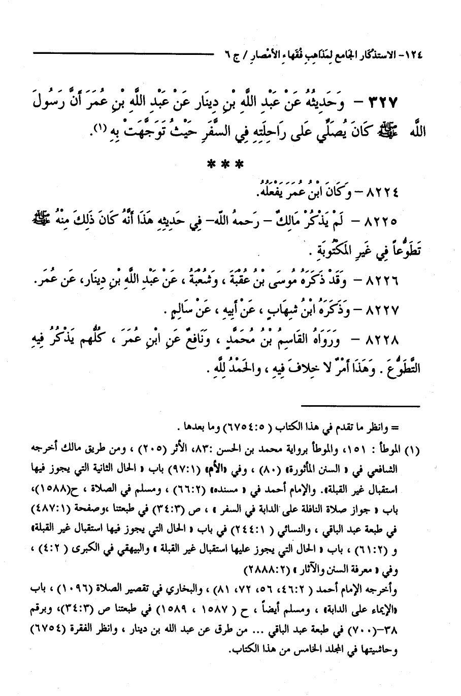 كتاب الاستذكار الجامع لمذاهب فقهاء الأمصار - ت: قلعجي (اسم الجزء: 6)